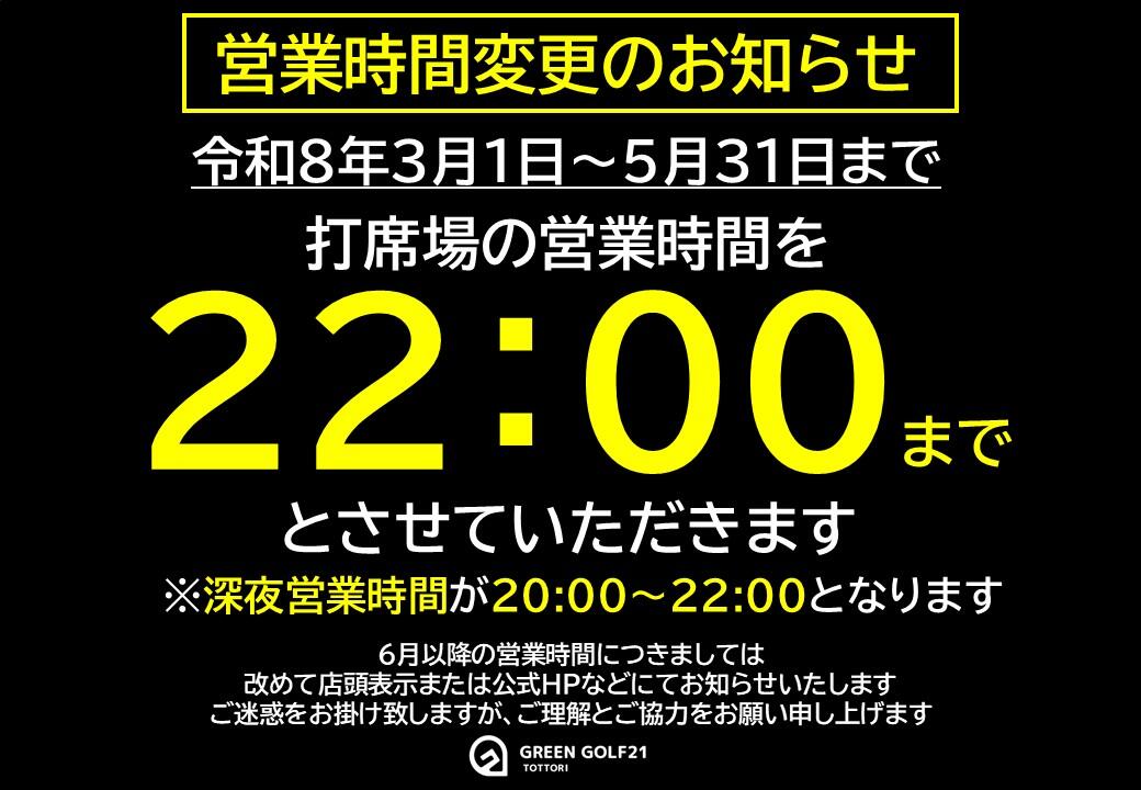 3月1日(日)より打席場の営業時間を